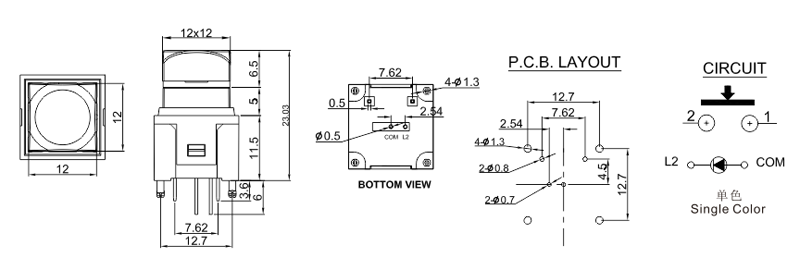 帶燈按鈕開關,LED燈有單燈,雙燈以及RGB全彩,按鍵尺寸有多種規格,可根據各大需求任意定制各種絲印,這類按鍵常用于廣播控制臺,視頻音頻處理器等。